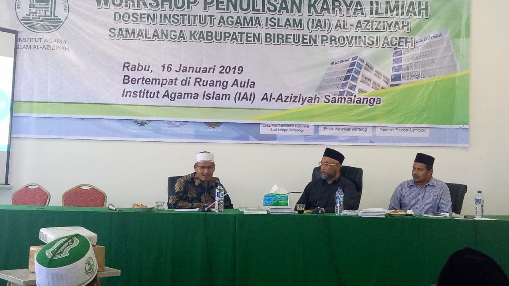 BIREUEN I IAIA- IAI Al-Aziziyah Samalanga, Bireuen mengadakan workshop penulisan karya ilmiah yang dilaksanakan di aula kampus setempat, Rabu, (16/1/2019).